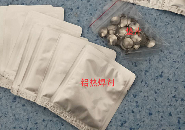?。?)然后依次將鋁熱焊劑、點火劑放置于銅片上部;